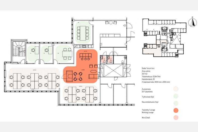 Tasokas viidennen kerroksen 257 m² Aina Valmis-toimisto