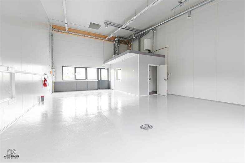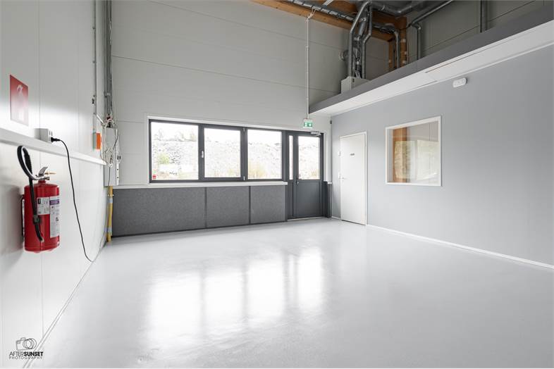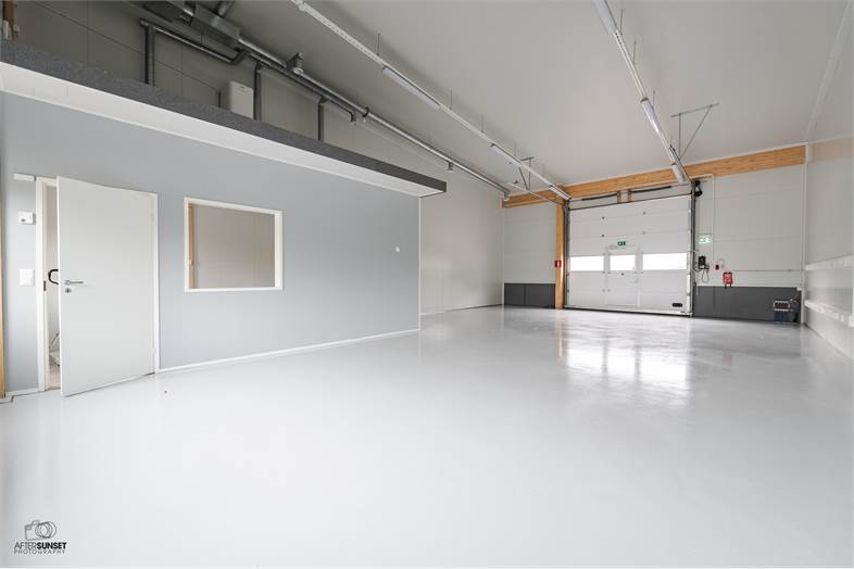 -Hallissa nosto-ovi sekä kulku molemmin puolin