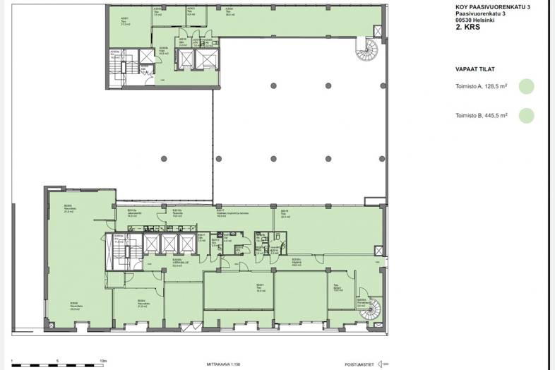 Paasivuorenkadun toisessa kerroksessa sijaitseva 370 m² kokoinen toimitila tarjoaa toimivat ja edustavat puitteet yrityksen tarpeisiin. Pohjaratkaisu yhdistää avotilaa ja useita erikokoisia työ- ja neuvotteluhuoneita, jotka tukevat sekä tiimityötä että rauhallista työskentelyä. Tilasta löytyy myös keittiö- ja taukotila sekä useita wc-tiloja. Suuret ikkunat tuovat tiloihin runsaasti luonnonvaloa ja avautuvat kauniisti Paasivuorenpuistikkoon.