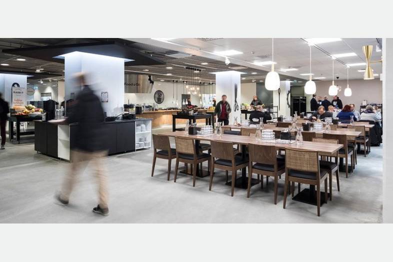 Rakennuksessa on lastauslaiturit sisäpihalla ja tavarahisseillä pääsee suoraan toimitiloihin.