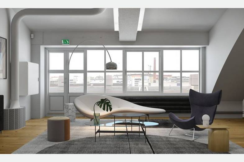 Tyylikäs 3.kerroksen 166 m² toimisto Vallilassa.