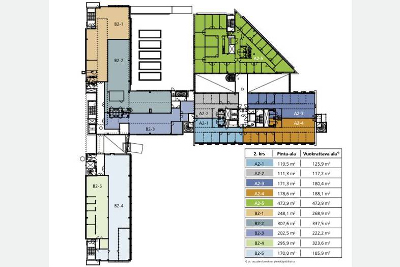 | Tilatyypit | Min m² | Max m² | €/m²/kk |