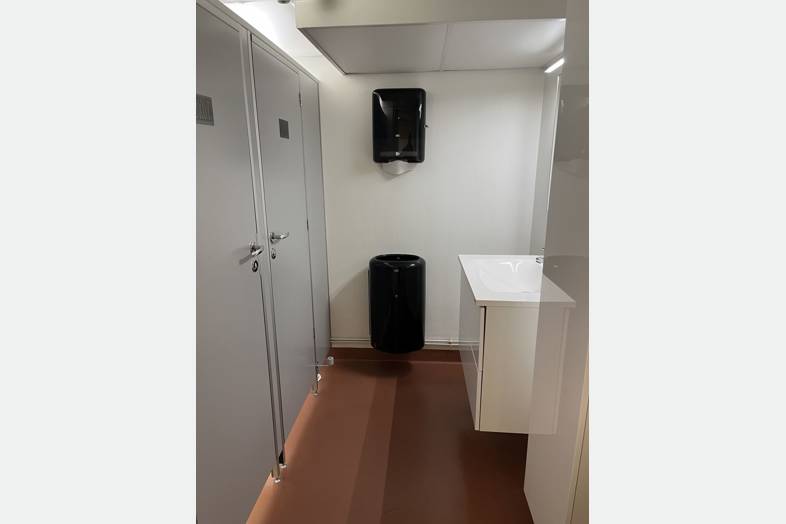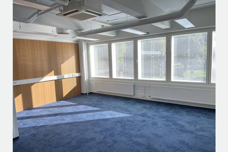 Tilakohtainen jäädytys lisää tilan käyttömukavuutta. Osassa huoneita on palamatto, joka parantaa akustiikkaa.
