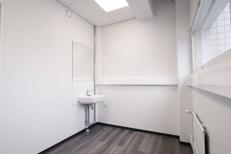 Kaikissa huoneissa on vesipiste altaalla ja odotustilassa on erillinen, juuri remontoitu yhteiskäyttö wc.