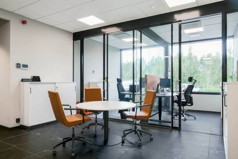 Vuokrattavan toimitilan kokonaispinta-ala on 2143 m², josta noin 1450 m² on korkeaa ja avaraa hallitilaa. Toimistoa löytyy kahdessa kerroksessa yhteensä noin 682 m² – tilavat huoneet isoilla ikkunoilla tarjoavat valoisan ja viihtyisän työympäristön.