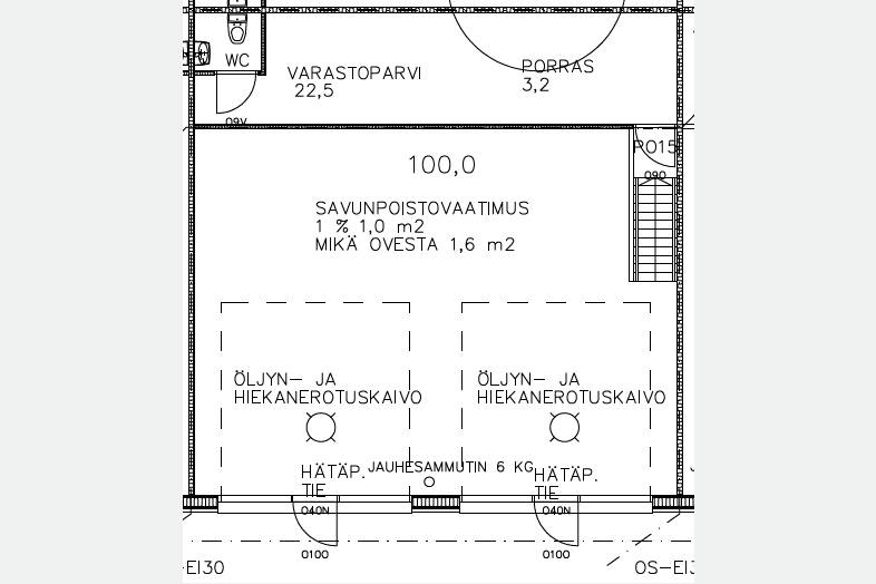 -Tilakoko, varastotila 100 m2, parvi 22,5 m2