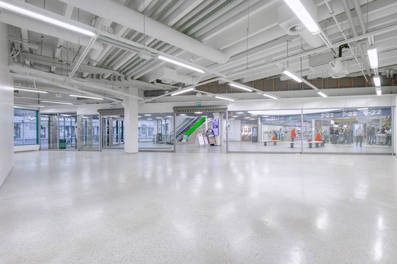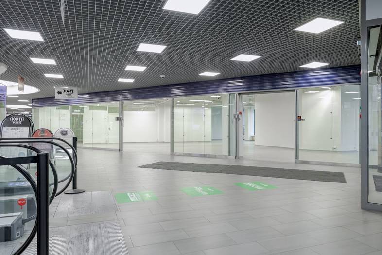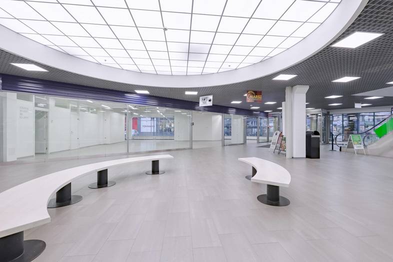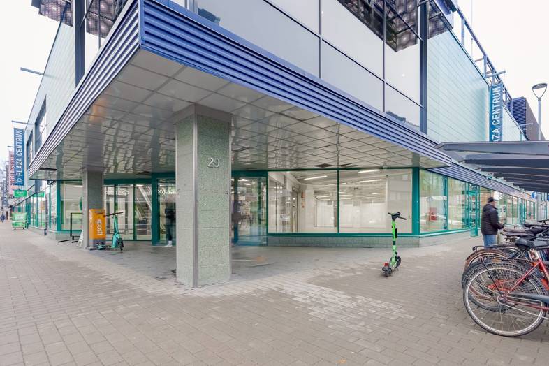 Plaza Centrum kulmaliiketila kävelykadun alkupäästä, Plaza Centrumin pääsisäänkäynnin vierestä.